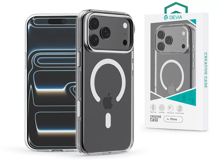Devia Crystal Series Magnetic 360° kameravédős ütésálló tok - Apple iPhone 17 Pro Max - átlátszó