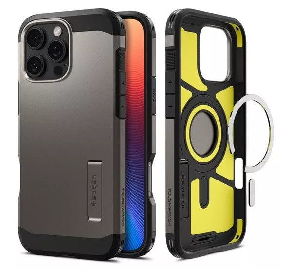 Spigen Tough Armor MagFit Apple iPhone 16 Pro tok, MagSafe, Gunmetal, fekete