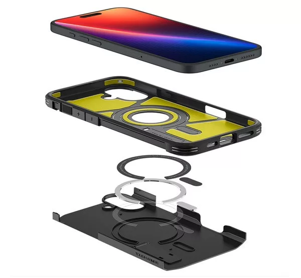 A Spigen Tough Armor Mag egy erős és strapabíró mobiltelefon tok, amely kiváló védelmet nyújt a mindennapi kopások, ütések ellen. Ez a tok a magas minőségű TPU és polikarbonát anyagok kombinációjából készül, ami biztosítja a megbízható védelmet a készülék számára. A tokba integrált mágneses gyűrű lehetővé teszi, hogy a készülék támogassa a MagSafe technológiát, amely lehetővé teszi a vezeték nélküli töltést és más MagSafe tartozékok használatát. Így a Spigen Tough Armor Mag nemcsak erős védelmet nyújt a készüléknek, hanem lehetővé teszi a MagSafe funkcionalitás teljes kihasználását is. Ergonomikus dizájnjának köszönhetően kényelmes fogást biztosít, miközben stílusos megjelenést kölcsönöz a készüléknek.