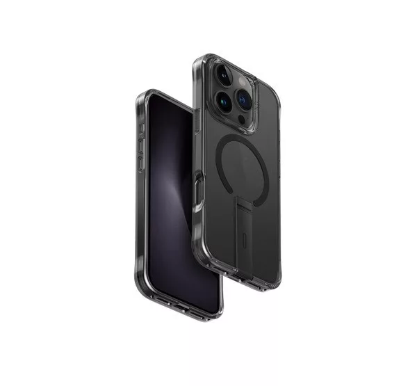 Uniq Eleva Apple iPhone 16 Pro Magsafe szilikon tok tartó résszel, karbon fekete