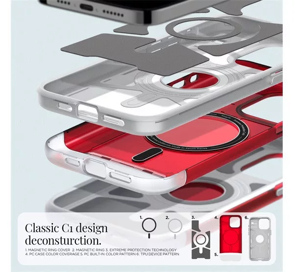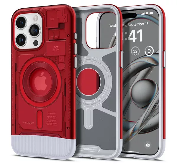 Spigen Classic C1 MagFit Apple iPhone 15 Pro tok, MagSafe, piros